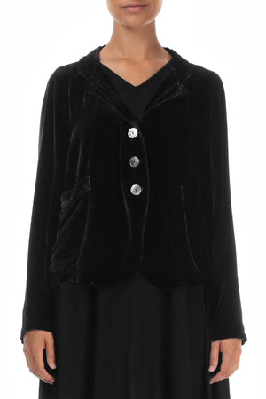 The elegant black silk velvet jacket in the most versatile GRIZAS three button design is a timeless piece that you will wear for many seasons ahead. Layer the jacket on a silk dress to add a glamorous touch to your outfit.