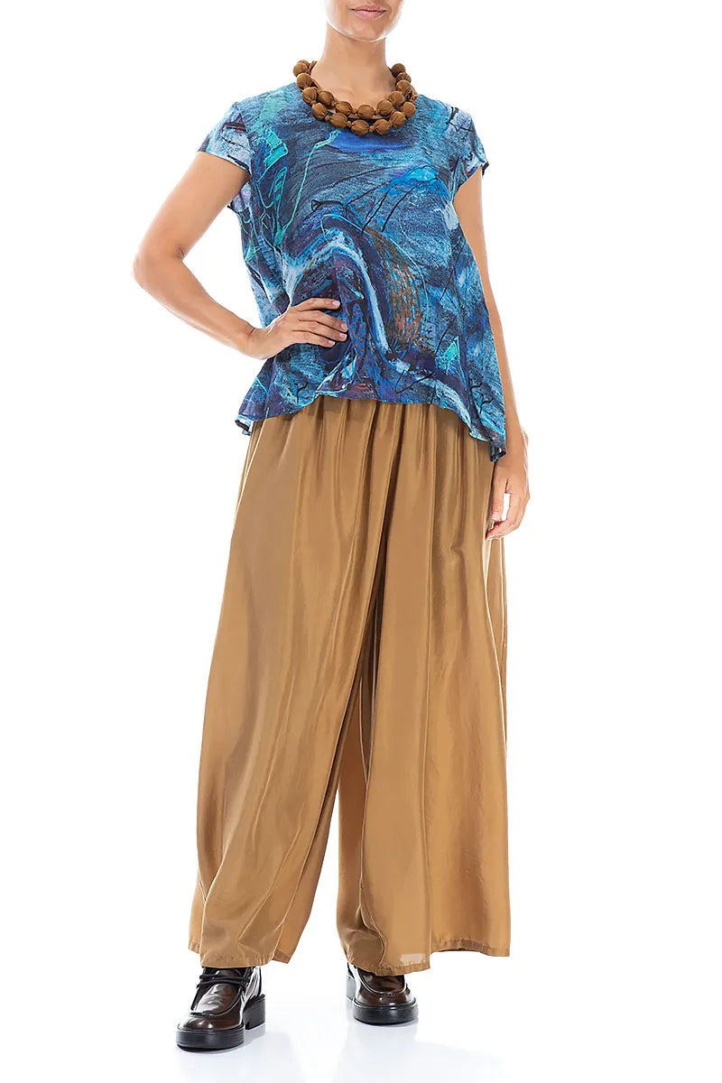 Weite Hose aus Seidenbaumwolle in PfauenoptikWeite Hose aus Seidenbaumwolle in Pfauenoptik- Regulärer Preis