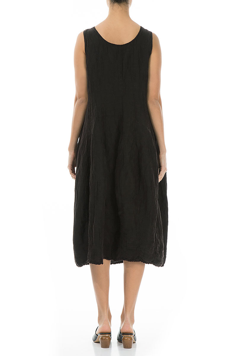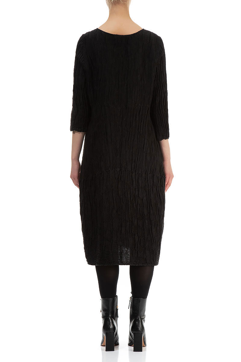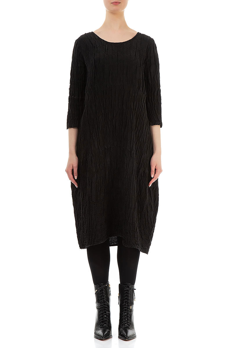 Ballonkleid aus schwarzem Seidenleinen in KnitteroptikBallonkleid aus schwarzem Seidenleinen in Knitteroptik- Regulärer Preis