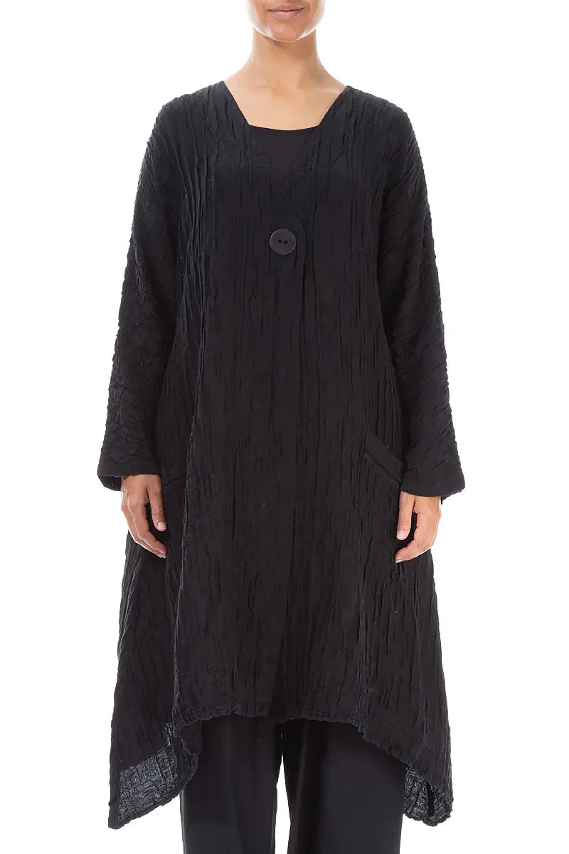 Ballonschwarzes strukturiertes Leinen-JackenkleidBallonschwarzes strukturiertes Leinen-Jackenkleid- Regulärer Preis