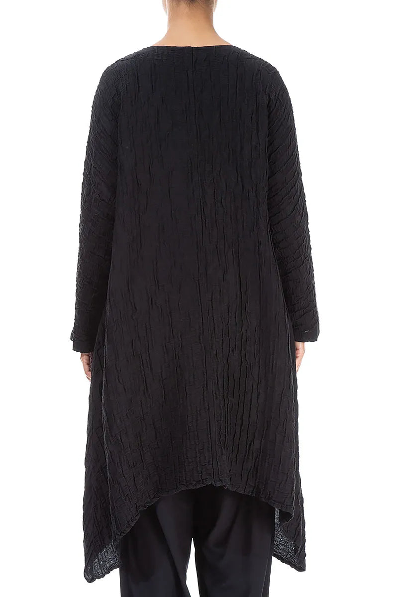 Asymmetrische Tunika aus schwarzem Seidenleinen in KnitteroptikAsymmetrische Tunika aus schwarzem Seidenleinen in Knitteroptik- Regulärer Preis