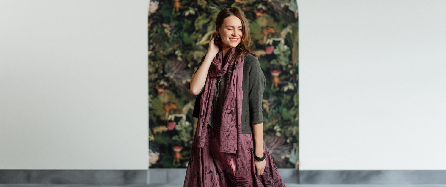 Burgunderfarbener Seidenschal mit Flammen-Ombré-EffektBurgunderfarbener Seidenschal mit Flammen-Ombré-Effekt- Regulärer Preis