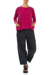 A-Linien-Leinenpullover mit zwei Taschen in Fuchsia