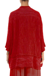 Ausgestelltes, knittriges, kirschrotes Seidenhemd