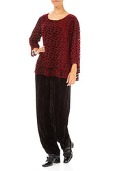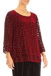 Bluse aus mehrlagigem Devoré-Seidensamt in Kirschrot mit Blütenblattmuster
