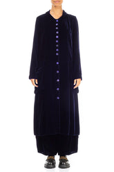 Elegante lange Jacke aus königsviolettem Seidensamt