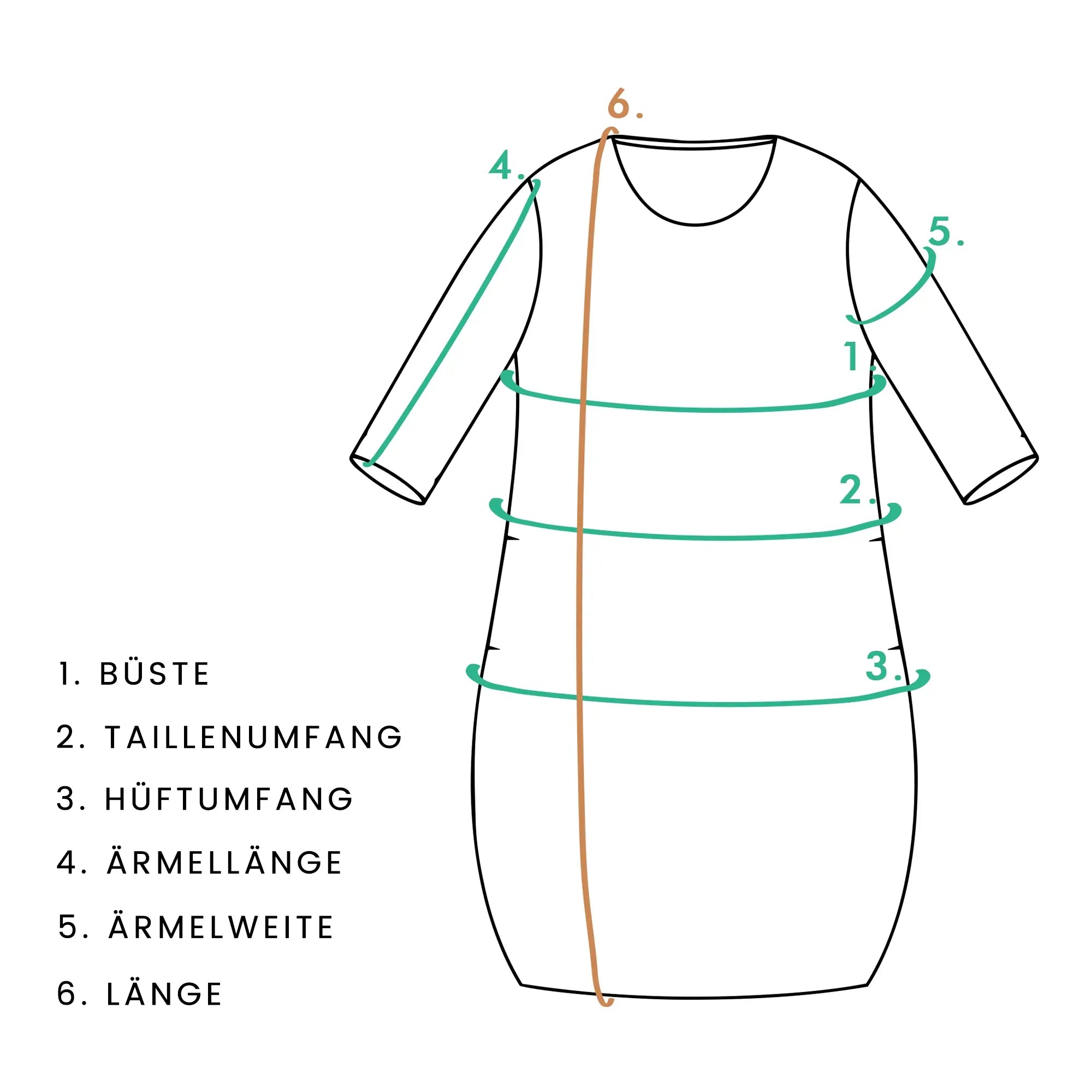 | Größe | Buste (CM) | Taille (CM) | Ärmellänge (CM) | Ärmelbreite (CM) | Länge (CM) |