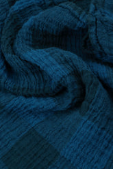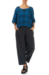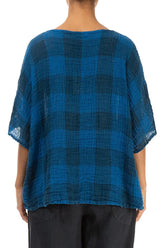 Kastenförmig geschnittene, großkarierte Bluse aus kobaltblauem Leinen-Gaze