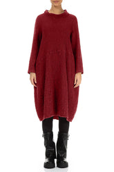 Kleid aus weichem, kirschrotem, strukturiertem Leinen mit Wasserfallausschnitt