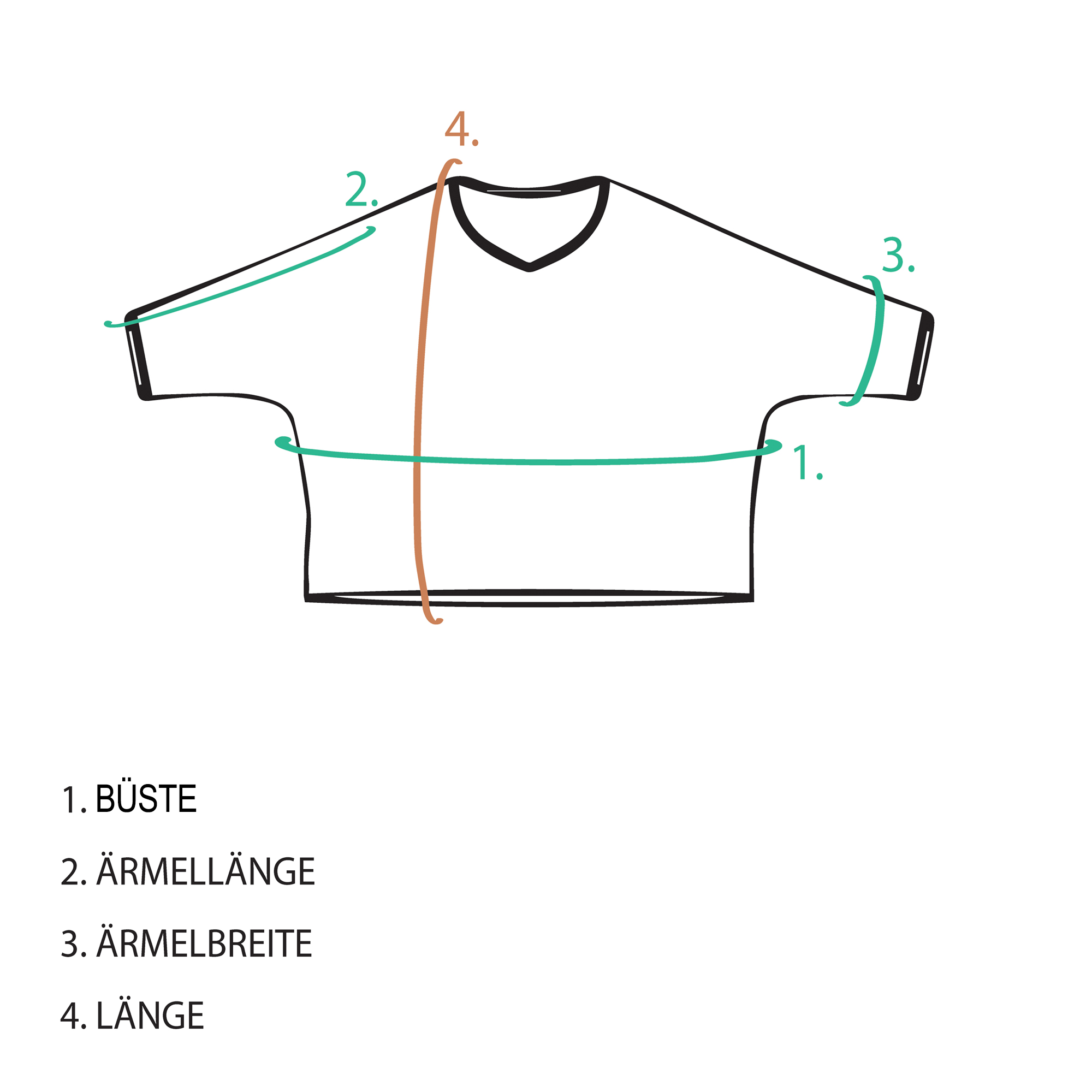 | Größe | Buste (CM) | Ärmellänge (CM) | Ärmelbreite (CM) | Länge (CM) |