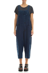 Marineblauer Leinen-Jumpsuit mit Trägern