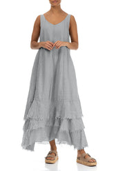 Maxikleid aus silbergrauem Leinen-Gaze