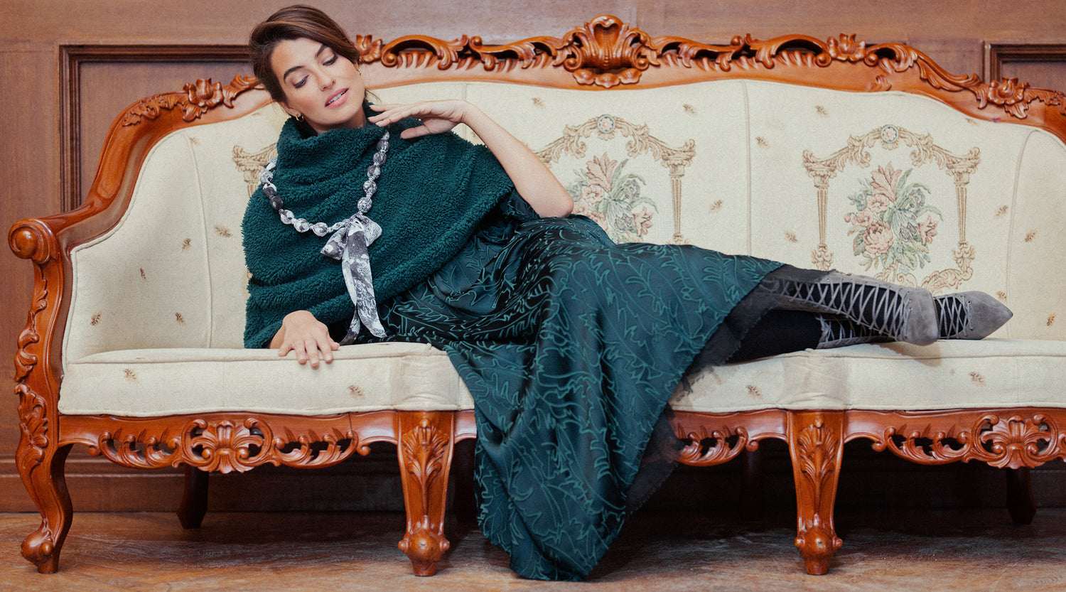 Robe en velours de soie à col bénitier Devoré Bubbles PaonRobe en velours de soie à col bénitier Devoré Bubbles Paon- Prix normal