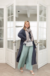Ce foulard en soie aux tons doux est magnifique et attire tous les regards. Sa forme extra-large permet de le porter aussi bien négligemment autour du cou que drapé sur les épaules comme un châle. Portez-le sur un ensemble en soie ton sur ton.