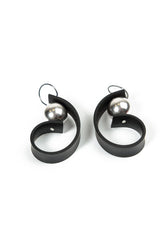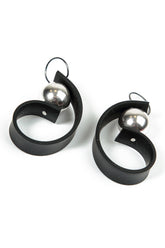 Ces boucles d'oreilles en caoutchouc noir sculpté, en forme d'arc, apportent une touche d'audace et de naturel à votre look. Leur forme incurvée encadre joliment le visage, tandis que la perle en métal brillant ajoute une note raffinée. Portez-les avec des tenues décontractées ou élégantes pour un style moderne et épuré.