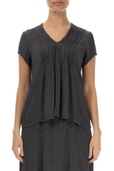 Chemisier en soie viscose graphite à col en V