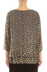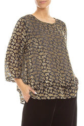 Chemisier en velours de soie doré à pétales dévorés superposés