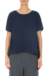 Haut en lin bleu marine à manches courtes