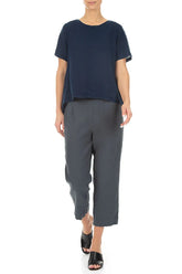 Simple et décontracté, ce top en lin bleu marine est conçu pour un confort optimal au quotidien. Son tissu en lin respirant et sa coupe fluide favorisent une liberté de mouvement naturelle, tandis que son ourlet arrière plus long lui confère une silhouette moderne et décontractée. Pièce polyvalente idéale pour les tenues décontractées, il s'associe facilement avec un pantalon ou une jupe.