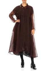Longue veste en mousseline de soie imprimée rouge cerise foncé