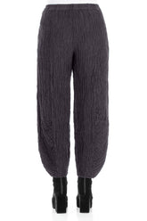 Pantalon en soie froissée bleu graphite à ourlet froncé