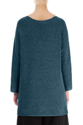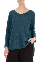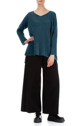 Pull en laine turquoise à col en V et dos plus long