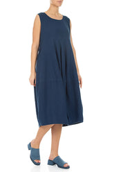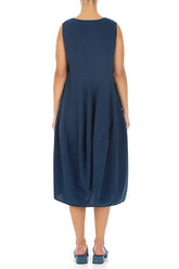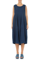 Robe bouffante sans manches en lin bleu marine