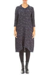 Élégante et décontractée, cette robe est confectionnée dans un luxueux mélange de soie et de lin à la texture circulaire unique. Sa coupe trapèze fluide présente un décolleté légèrement froncé, des manches trois-quarts et une longueur midi confortable. Dans une teinte profonde, elle offre une grande polyvalence, idéale pour les journées décontractées comme pour les occasions spéciales.