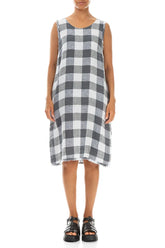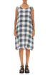 Robe en lin blanc à grands carreaux, sans manches et effilochée