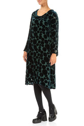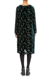 Robe en velours de soie à col bénitier Devoré Bubbles Paon