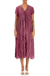 Cette robe intemporelle avec un décolleté en V flatteur, des plis sur le devant et une longueur midi est fabriquée à la main à partir de pure soie luxueuse avec un effet froissé et plissé. C'est un véritable essentiel de la garde-robe, pour tous les jours, toutes les occasions.