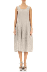 Robe sans manches en soie et lin beige froissé, à volants bouffants