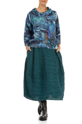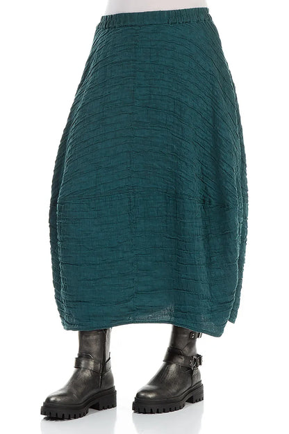 Balloon Shape Crinkled Peacock Silk Linen Skirt