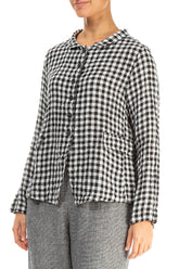 The long-loved GRIZAS jacket now comes in black & white check linen. Perfect to style with dresses and trousers, the jacket features a button closure, two flap pockets, and a back slit for easy layering.