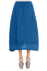 Crinkled Cobalt Blue Silk Linen Skirt
