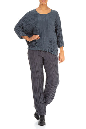 Loose Crinkled Grey Silk Linen Blouse