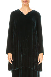 Decorated V-Neck Peacock Silk Velvet Tunic