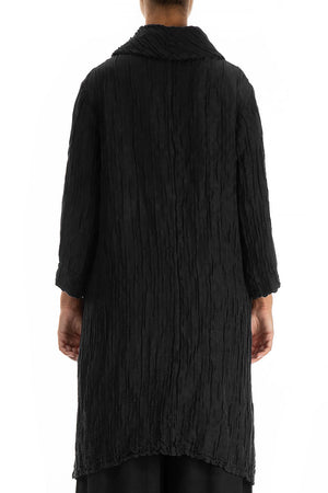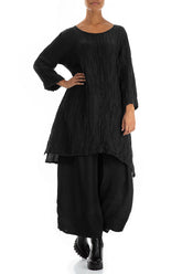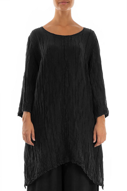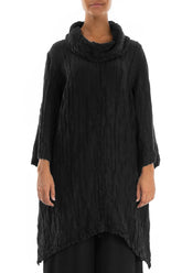 Detachable Collar Crinkled Black Silk Linen Tunic