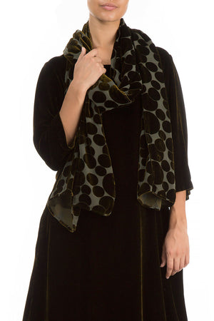 Devoré Bubbles Khaki Silk Velvet Scarf