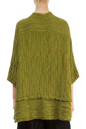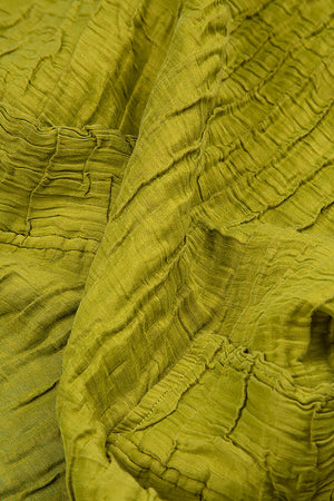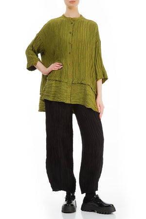 Your favourite button-up shirt is crafted from crinkled natural silk linen fabric. Featuring a stylish round grandad collar and a fresh golden lime shade, this flared design allows for freedom of movement while ensuring a trendy look for seasons to come.