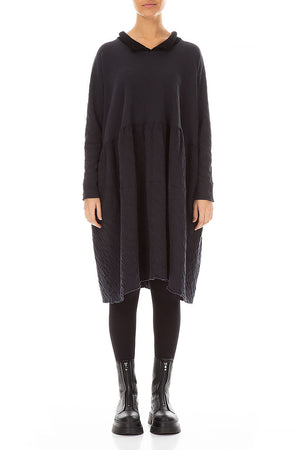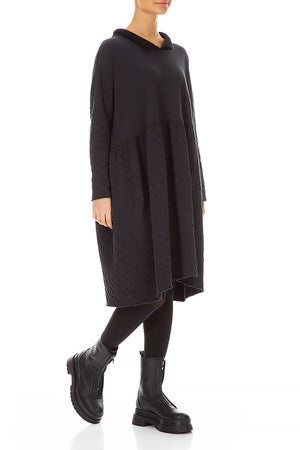 Made from the unique wavy texture soft cotton wool blend fabric in versatile dark grey colour, this dress is comfortable and trendy. Flared, loose and comfortable, enhanced with the knitted collar neck, this dress perfectly fits any figure. Match it with leggings or layer it on trousers and look great.