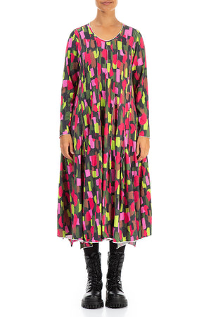 Flared Maxi Paint Mosaic Cotton Dress