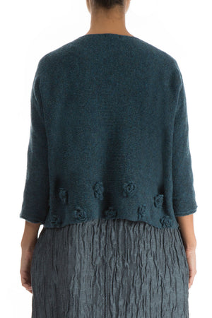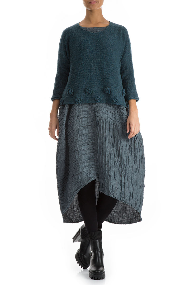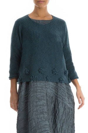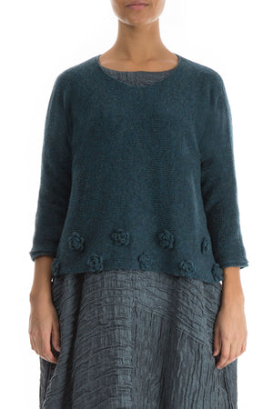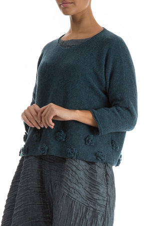 Cosy up your style with a wool jumper in the signature GRIZAS design. Loose flared shape, romantic handmade crochet roses and unique teal colour make this jumper an inevitable piece for autumn and winter.