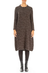 Elegant yet effortless, this dress is crafted from a luxurious silk-linen blend with a distinctive circle texture. The relaxed A-line silhouette features a softly gathered neckline, long sleeves, and a comfortable midi length. In a rich hue, it offers versatile styling for both casual days and special occasions.