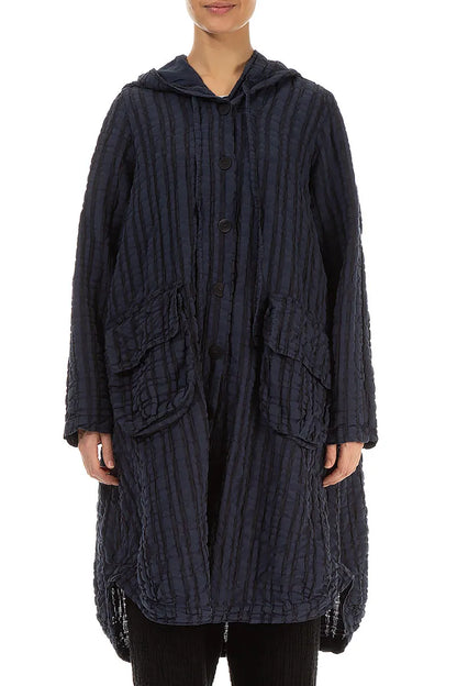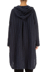 Hooded Oversized Slate Blue Checkered Linen Cotton Jacket