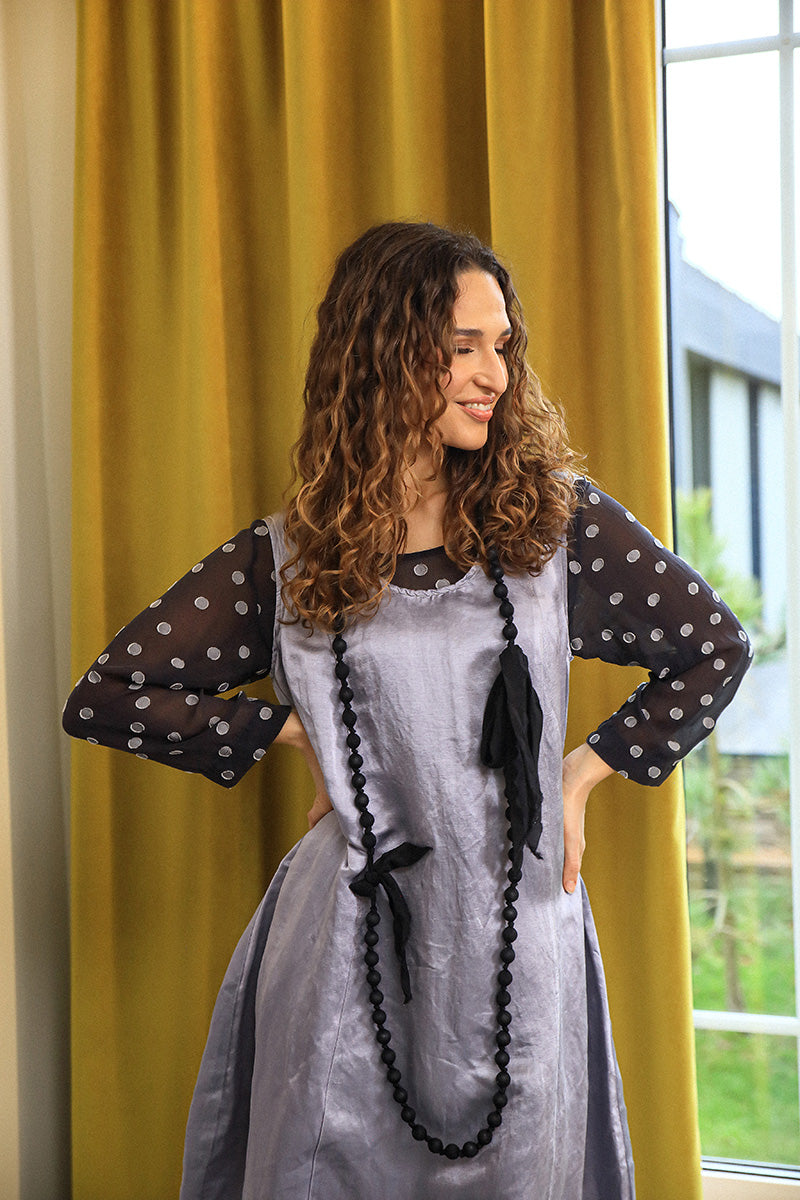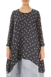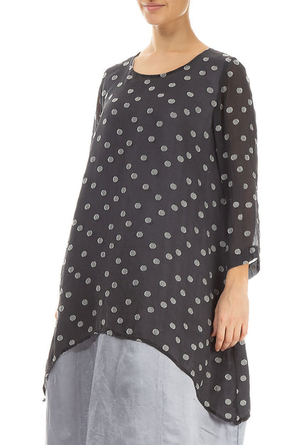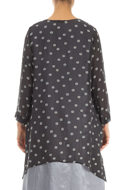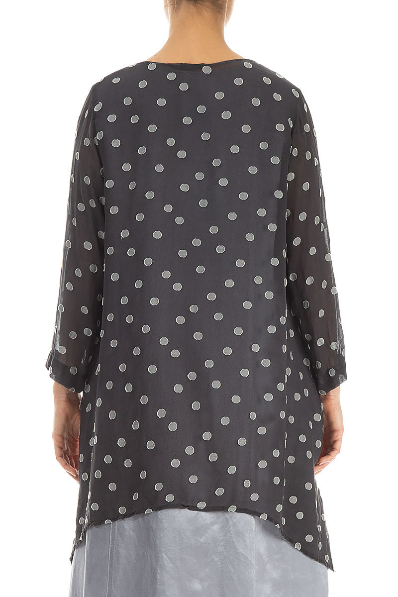Delicate highest quality silk with playful dots is lightweight and feels gentle and soft on the skin. The tunic features a flattering shape in a perfect length that creates a feminine hourglass look.