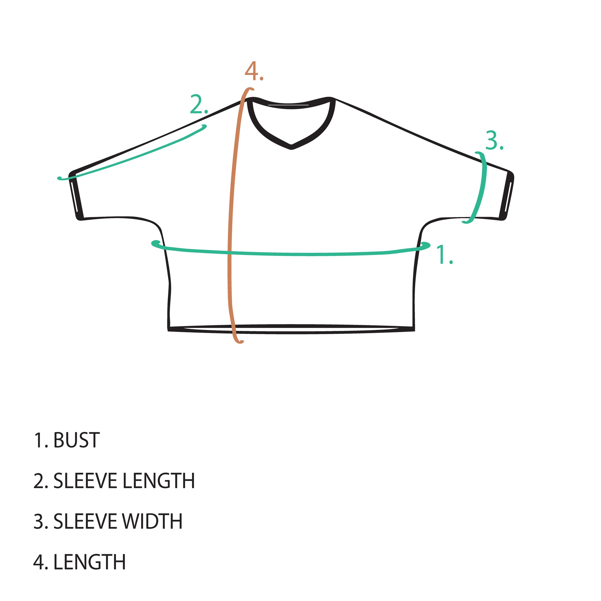 | Size | Bust (CM) | Sleeve Length (CM) | Sleeve Width (CM) | Length (CM) |