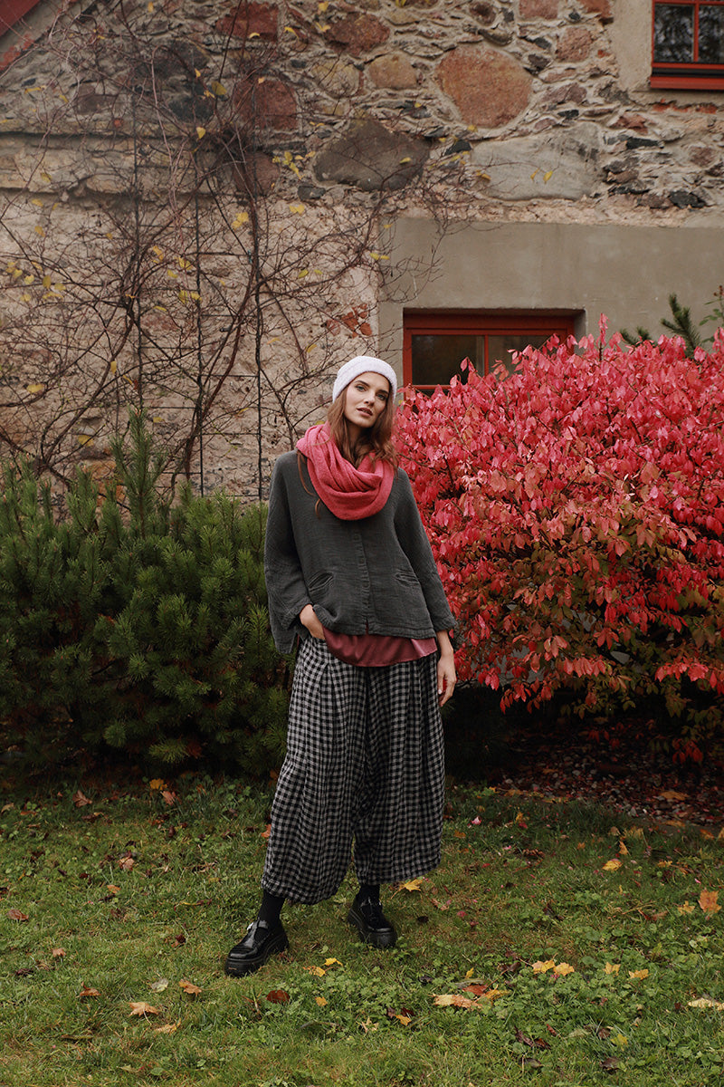 Discover the wide bohemian style linen trousers with stretchy cotton waist for extra comfort. The trousers not only look great, but also are easy to style.