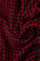 Discover the wide bohemian linen trousers with stretchy cotton waist for extra comfort. The trousers crafted from pure checkered linen in red shade look fantastic and are easy to style.