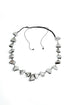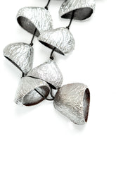 Recycled pangium seed shells form a striking sculptural necklace with a shimmering silver surface reminiscent of moonlit textures. The adjustable rope allows you to choose your ideal length, while the lightweight hollow forms shift gently as you move, adding subtle sound and organic elegance to your look. A bold, artistic accent that elevates both everyday and evening outfits.